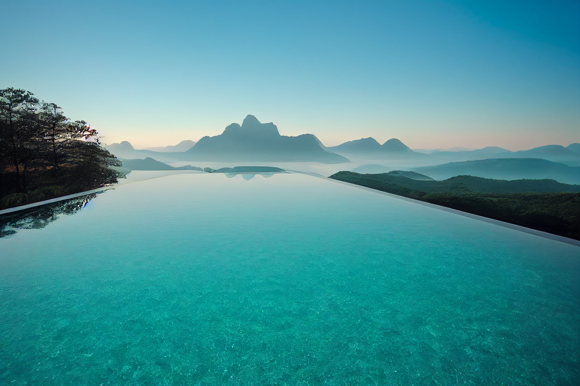 - Überlaufpools: hochwertig, modernes Design, fließende Wasserlinie